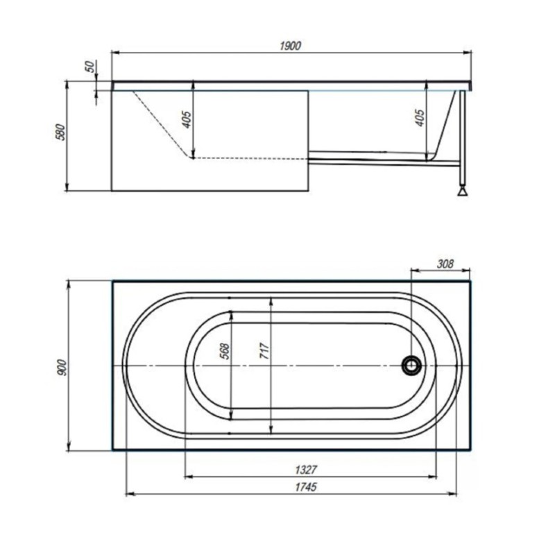 Размеры: 190x90 см - оптимальный размер для комфортного принятия ванны.