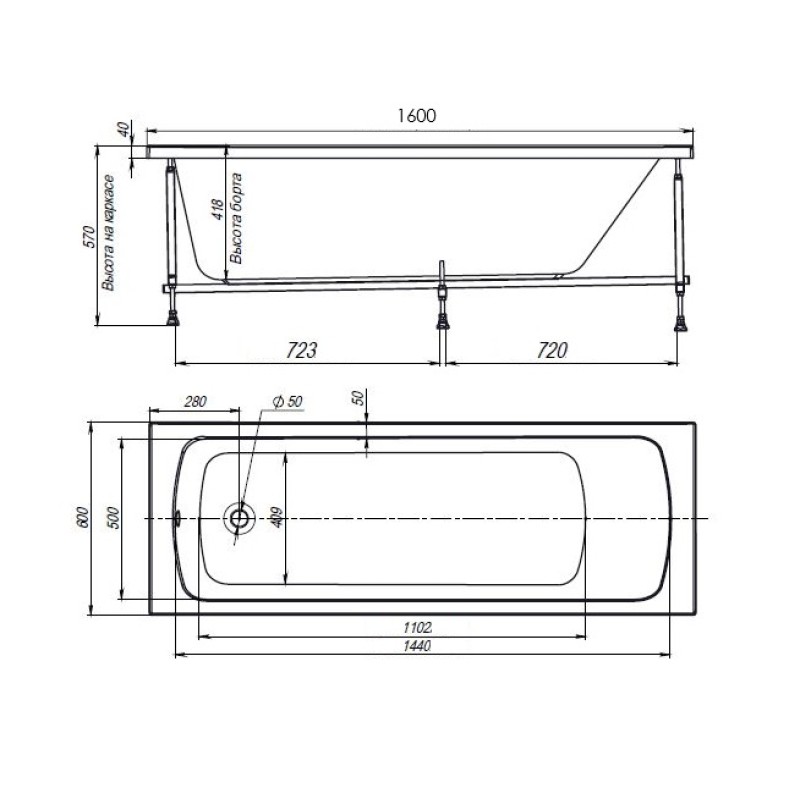 Размеры:160x60 см - оптимальный размер для комфортного принятия ванны.
