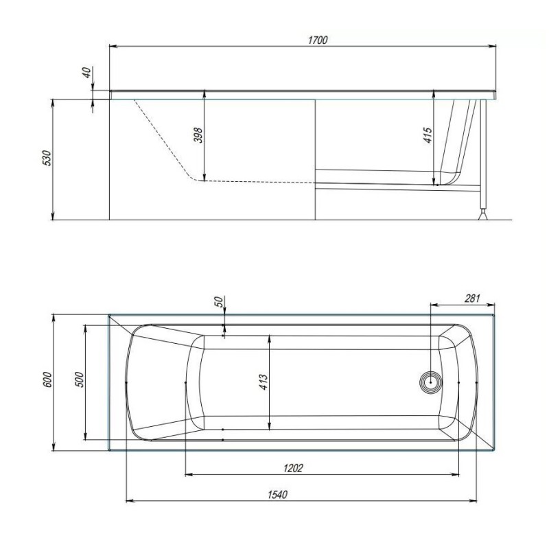 Размеры:170x60 см - оптимальный размер для комфортного принятия ванны.