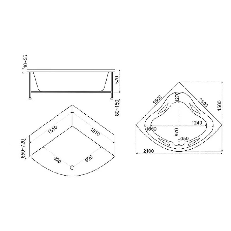 Просторная и комфортная: Размеры 150x150 см обеспечивают достаточно места для полного расслабления.