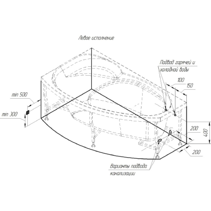 - Расположение слива:стандартное