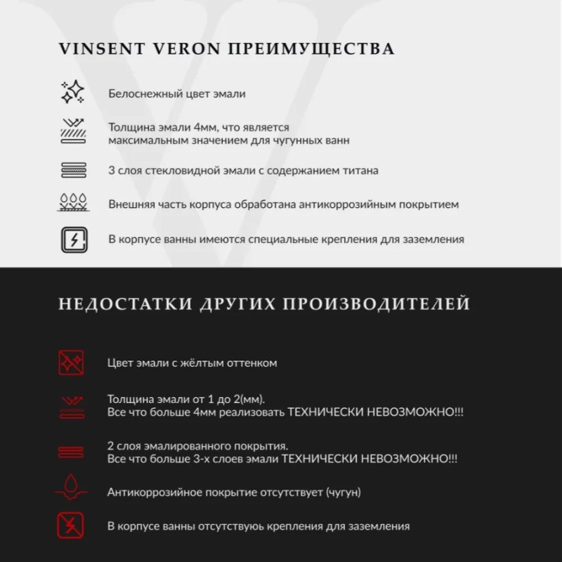 Чугунная ванна Vinsent Veron Devon 180x70x45
