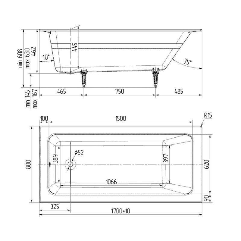 Элегантный дизайн:Классический дизайн ванны Wotte Line 170x70 БП-э00д1467 идеально впишется в любой интерьер.