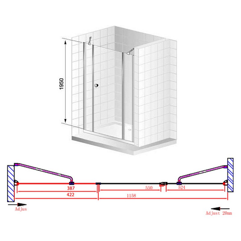 Душевая дверь в нишу Cezares Elena B13 40/60/60 P Cr R