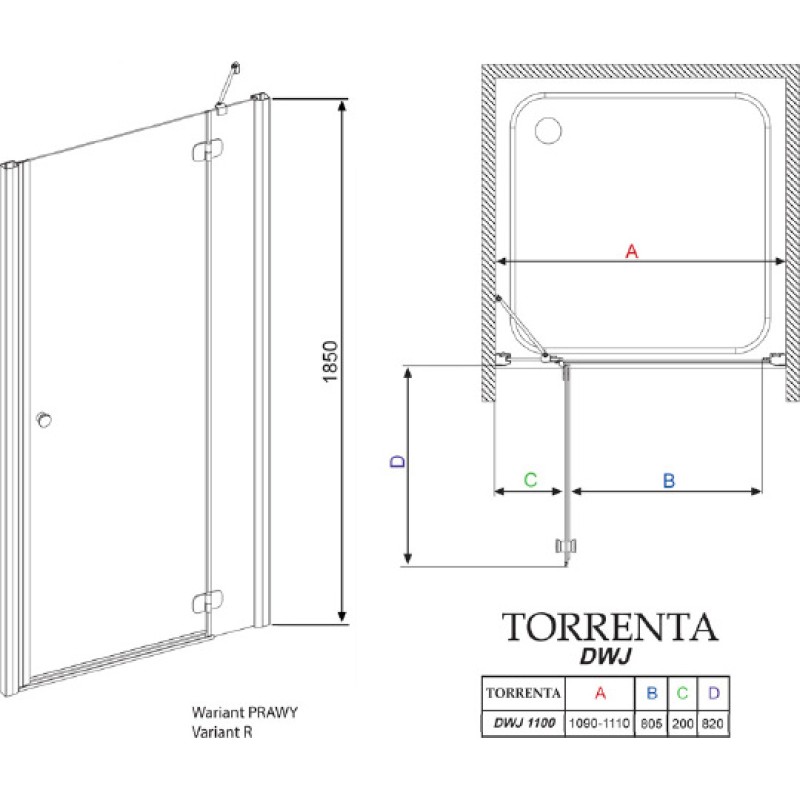 Душевая дверь в нишу Radaway Torrenta DWJ 110 стекло графит R