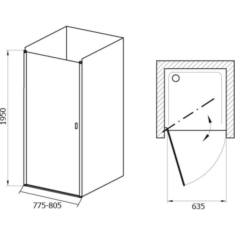 Душевая дверь в нишу Ravak CSD1-80 Transparent, профиль блестящий