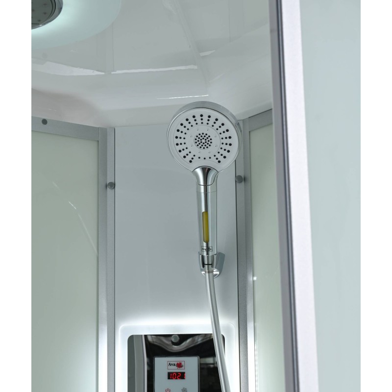 Стильная душевая кабина AvaCan C 3012L LED сочетает в себе высокую функциональность, практичность и надежность. При изготовлении применяется безопасное закаленное стекло толщиной 4 мм (матовое), надежно фиксируемое алюминиевым профилем. Сборка без силикона (увеличивает срок службы), внутренняя сборка(облегчает установку и ревизию; позволяет установить в ограниченном пространстве), смеситель резьбовой (без хомутов). Съемный экран поддона (позволяет осуществлять ревизию сифона). Цвет профиля матовый хром. Двойные металлические ролики дверей (увеличивают срок службы).В комплекте : полочка, тропический (верхний) душ, арома-лейка с витамином С (картридж съемный), сенсорный пульт (блютуз, радио, LED подсветка в крыше и в центральной панели, вентелятор.)