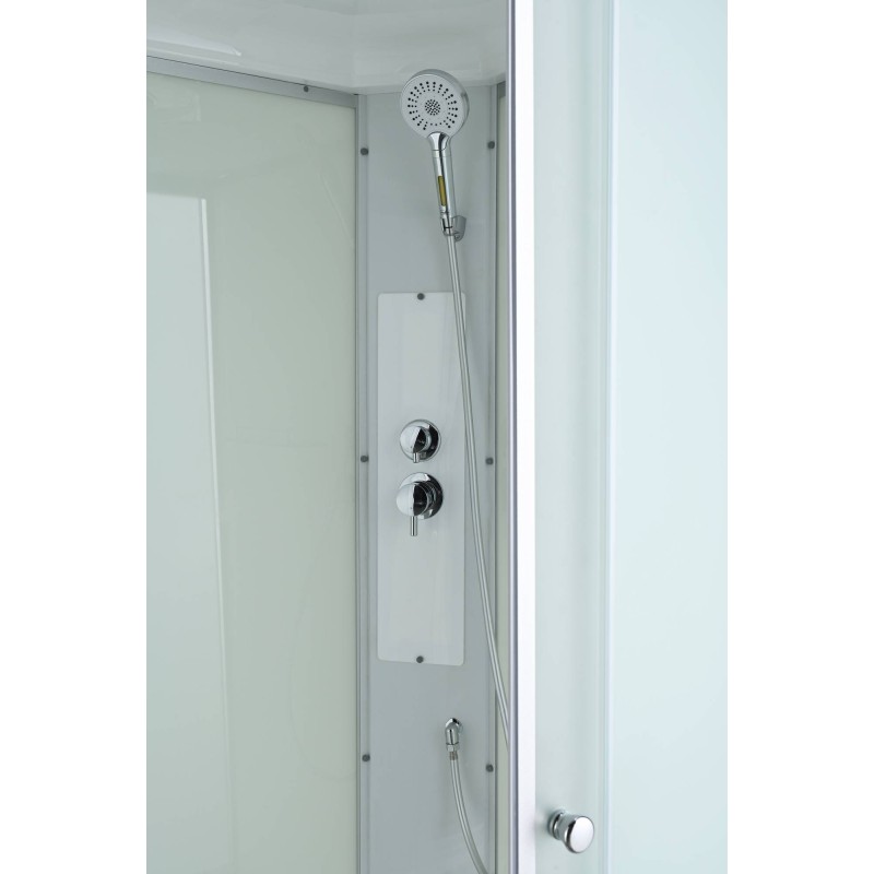 Стильная душевая кабина AvaCan сочетает в себе высокую функциональность, практичность и надежность. При изготовлении применяется безопасное закаленное стекло, надежно фиксируемое алюминиевым профилем. Профиль сделан из алюминия повышенной прочности. Сборка без силикона (увеличивает срок службы, защищает от протечек), внутренняя сборка (облегчает установку и ревизию; позволяет установить в ограниченном пространстве и обойтись без демонтажа других сантехнических приборов), смеситель резьбовой (без хомутов). Съемный экран поддона (позволяет осуществлять подключение и ревизию сифона).Двойные металлические ролики дверей (распределение нагрузки на два ролика, увеличивают срок службы).Ручная арома-лейка с витамином С (картридж в комплекте,есть возможность замены или удаления картриджа), полочка(из стекла, с ограничителем), сифон с гидрозатвором.