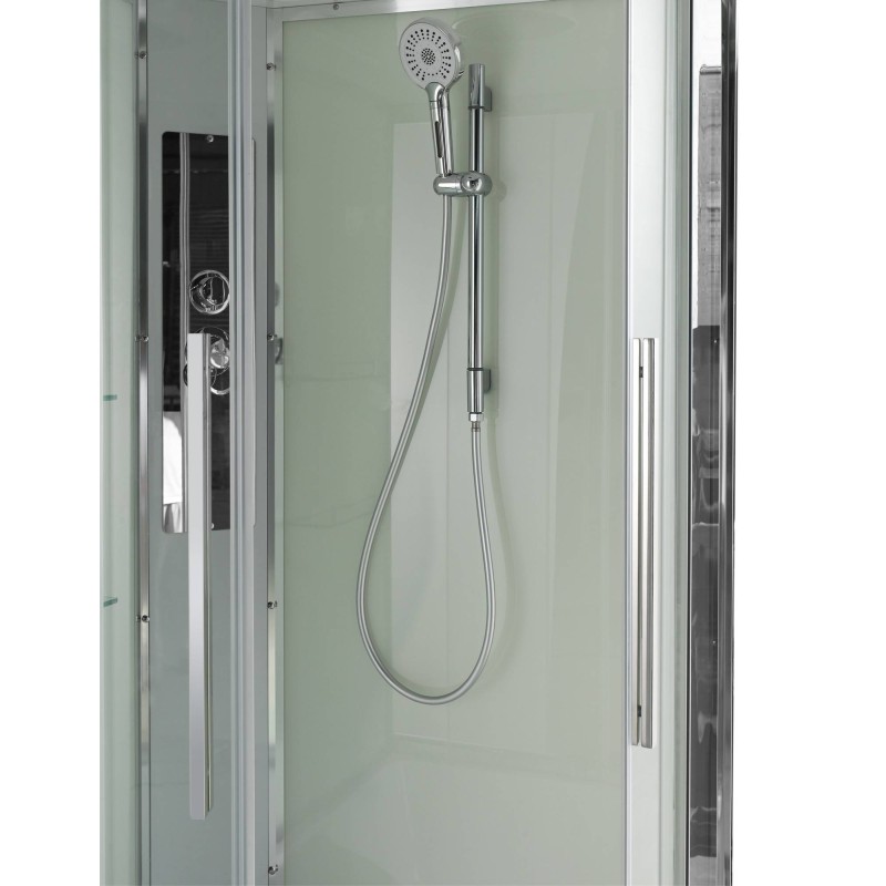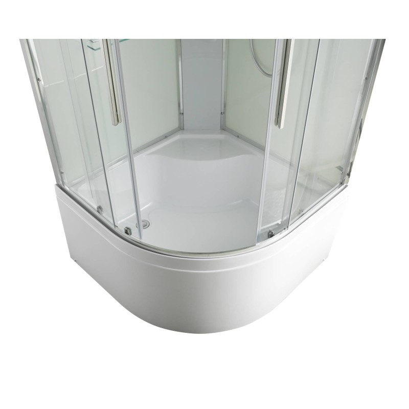 Стильная душевая кабина AvaCan сочетает в себе высокую функциональность, практичность и надежность. При изготовлении применяется безопасное закаленное стекло, надежно фиксируемое алюминиевым профилем. Профиль сделан из алюминия повышенной прочности. Сборка без силикона (увеличивает срок службы, защищает от протечек), внутренняя сборка (облегчает установку и ревизию; позволяет установить в ограниченном пространстве и обойтись без демонтажа других сантехнических приборов), смеситель резьбовой (без хомутов). Съемный экран поддона (позволяет осуществлять подключение и ревизию сифона).Двойные металлические ролики дверей (распределение нагрузки на два ролика, увеличивают срок службы). Душевая штанга(позволяет регулировать по высоте ручную лейку), ручная арома-лейка с витамином С (картридж в комплекте,есть возможность замены или удаления картриджа), полочки(из стекла, с ограничителем), сифон с гидрозатвором.