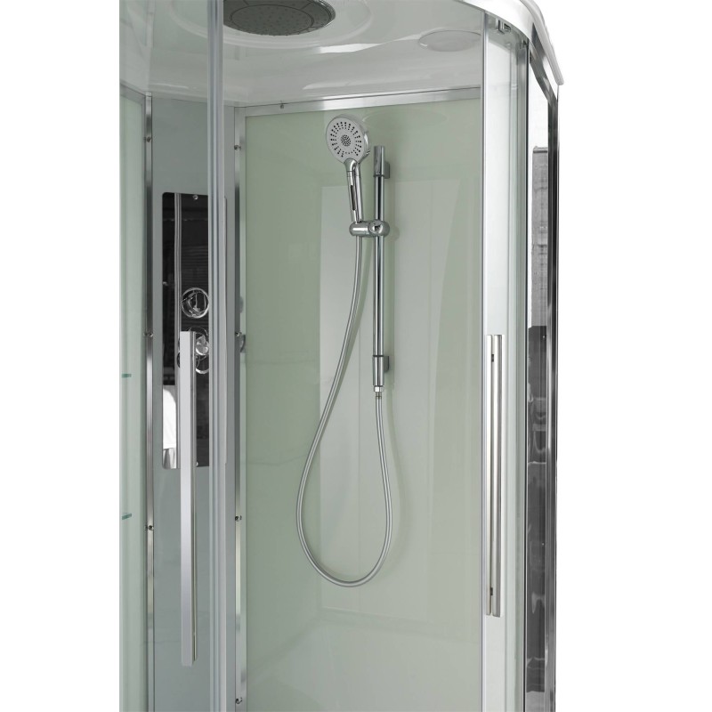 Стильная душевая кабина AvaCan сочетает в себе высокую функциональность, практичность и надежность. При изготовлении применяется безопасное закаленное стекло, надежно фиксируемое алюминиевым профилем. Профиль сделан из алюминия повышенной прочности. Сборка без силикона (увеличивает срок службы, защищает от протечек), внутренняя сборка (облегчает установку и ревизию; позволяет установить в ограниченном пространстве и обойтись без демонтажа других сантехнических приборов), смеситель резьбовой (без хомутов). Съемный экран поддона (позволяет осуществлять подключение и ревизию сифона).Двойные металлические ролики дверей (распределение нагрузки на два ролика, увеличивают срок службы). Душевая штанга(позволяет регулировать по высоте ручную лейку), ручная арома-лейка с витамином С (картридж в комплекте,есть возможность замены или удаления картриджа), полочки(из стекла, с ограничителем), сифон с гидрозатвором.