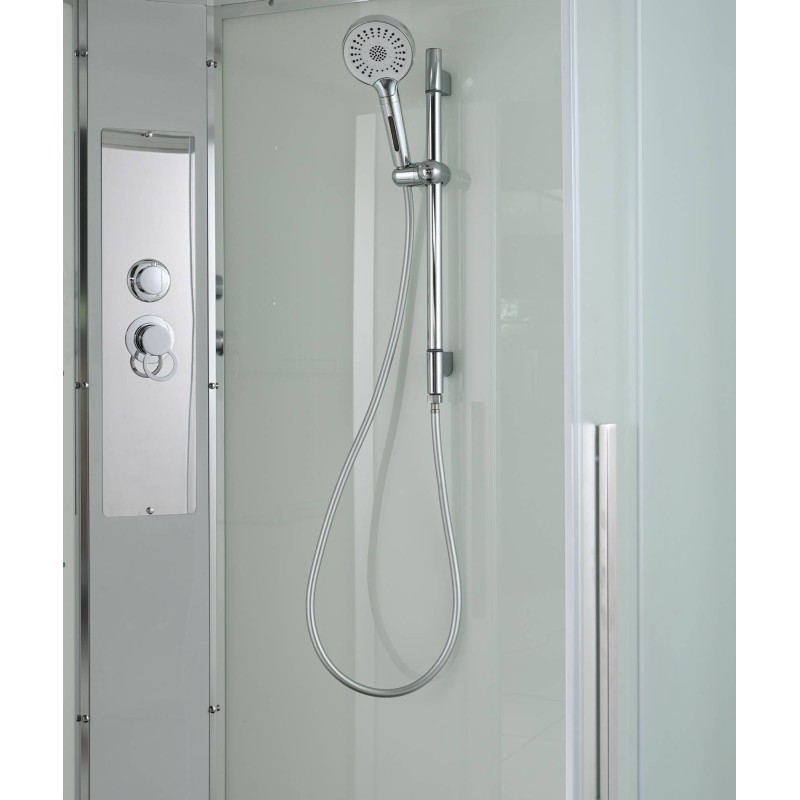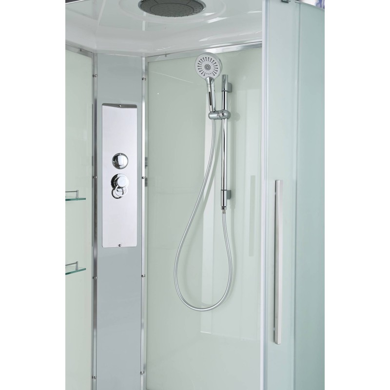 Стильная душевая кабина AvaCan сочетает в себе высокую функциональность, практичность и надежность. При изготовлении применяется безопасное закаленное стекло, надежно фиксируемое алюминиевым профилем. Профиль сделан из алюминия повышенной прочности. Сборка без силикона (увеличивает срок службы, защищает от протечек), внутренняя сборка (облегчает установку и ревизию; позволяет установить в ограниченном пространстве и обойтись без демонтажа других сантехнических приборов), смеситель резьбовой (без хомутов). Съемный экран поддона (позволяет осуществлять подключение и ревизию сифона).Двойные металлические ролики дверей (распределение нагрузки на два ролика, увеличивают срок службы). Душевая штанга(позволяет регулировать по высоте ручную лейку), ручная арома-лейка с витамином С (картридж в комплекте,есть возможность замены или удаления картриджа), полочки(из стекла, с ограничителем), сифон с гидрозатвором.