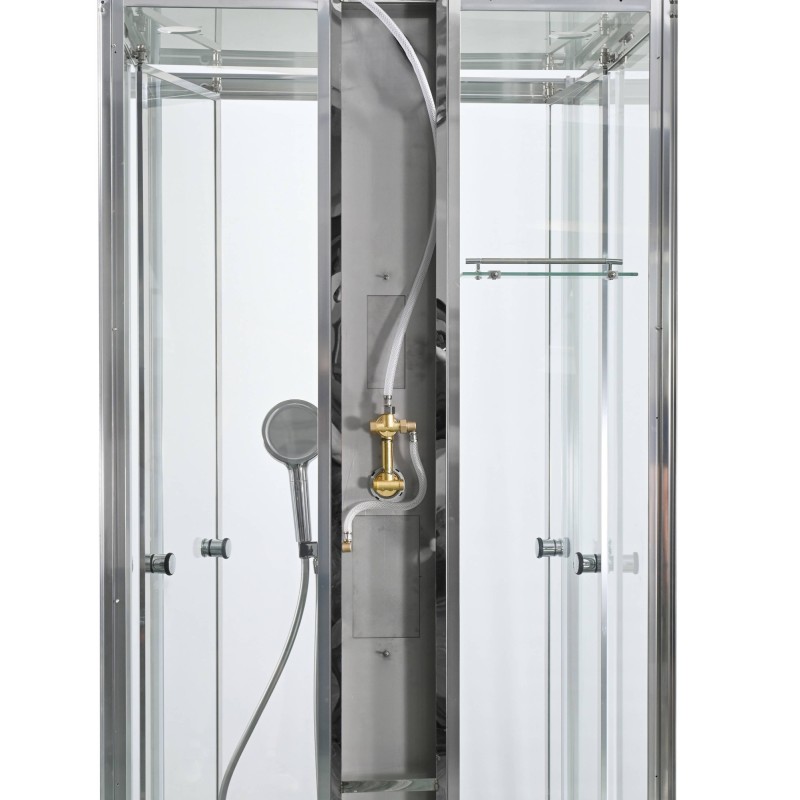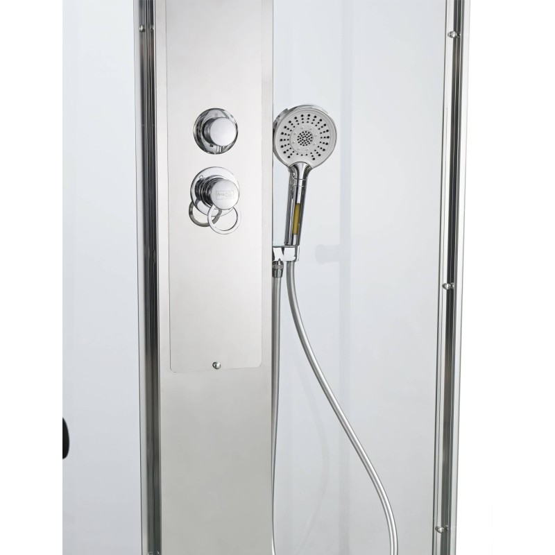 Стильная душевая кабина AvaCan сочетает в себе высокую функциональность, практичность и надежность. При изготовлении применяется безопасное закаленное стекло, надежно фиксируемое алюминиевым профилем. Профиль сделан из алюминия повышенной прочности. Сборка без силикона (увеличивает срок службы, защищает от протечек), внутренняя сборка (облегчает установку и ревизию; позволяет установить в ограниченном пространстве и обойтись без демонтажа других сантехнических приборов), смеситель резьбовой (без хомутов).Двойные металлические ролики дверей (распределение нагрузки на два ролика, увеличивают срок службы). Душевая штанга(позволяет регулировать по высоте ручную лейку), ручная арома-лейка с витамином С (картридж в комплекте,есть возможность замены или удаления картриджа), полочки(из стекла, с ограничителем), сифон с гидрозатвором.
