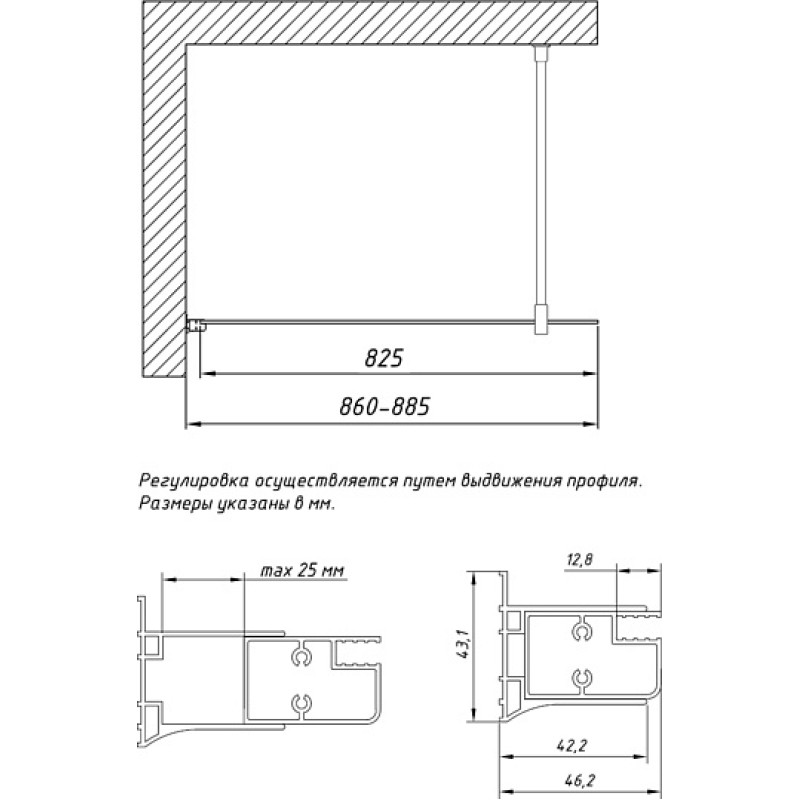 Душевая перегородка Vegas Glass EAF 86 09 05 профиль золото, стекло бронза