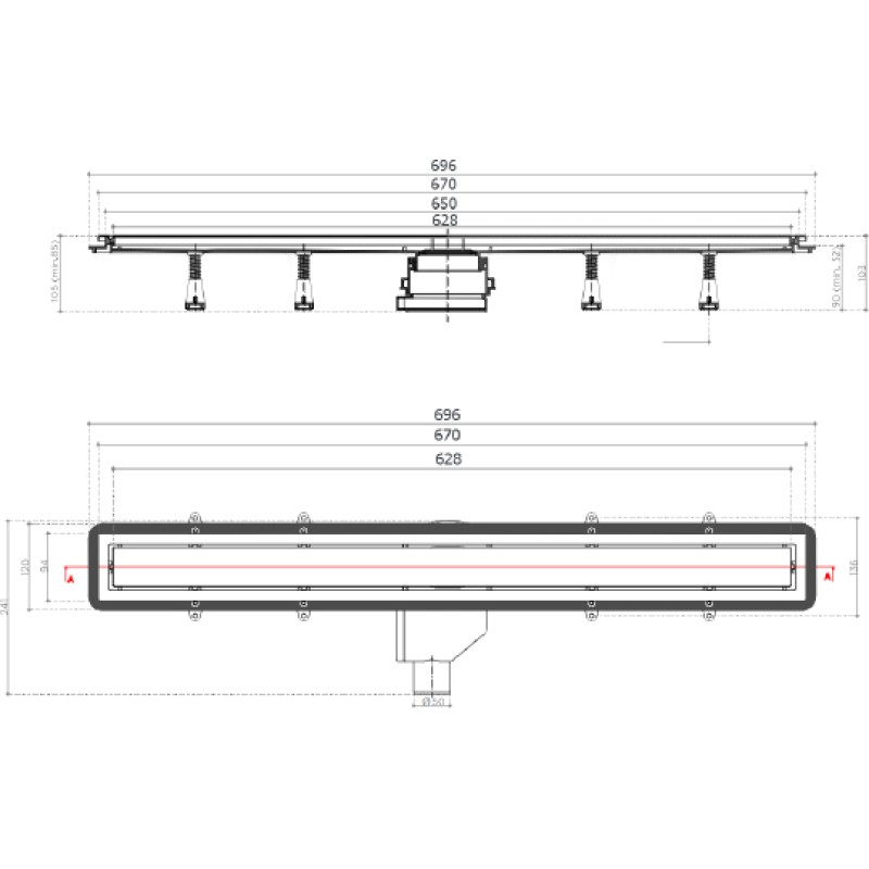 Душевой лоток Pestan Confluo Premium Gold Black Glass Line 650 черное стекло/позолоченная сталь