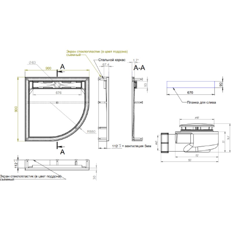 - Тип:душевой поддон