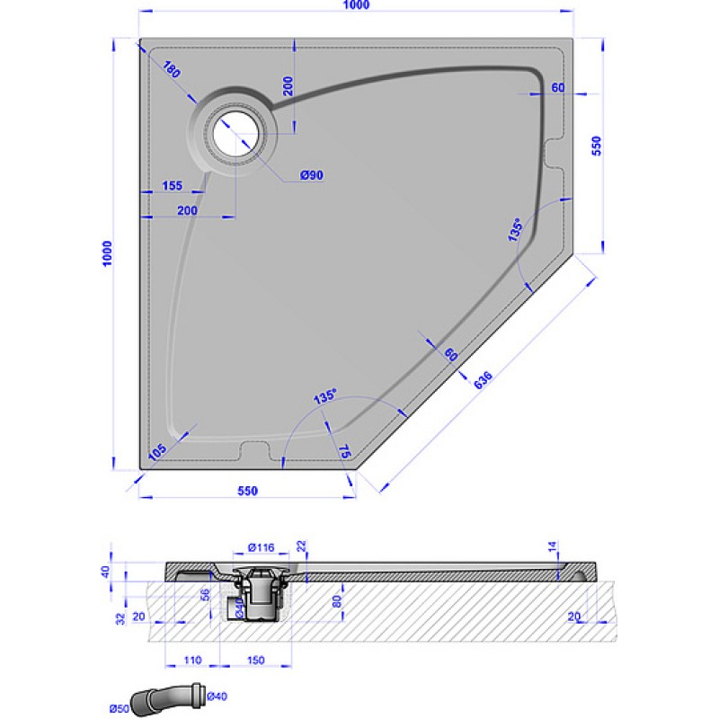 - Тип:душевой поддон