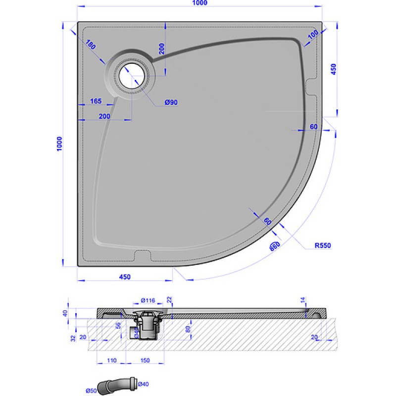 Поддон для душа GuteWetter Deluxe 100x100x4 R серый