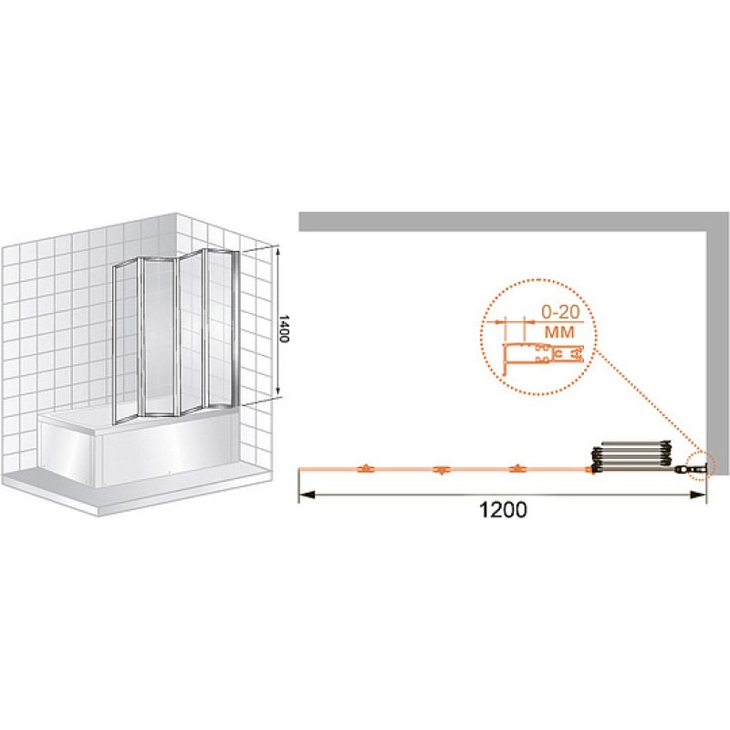 - Тип:душевая шторка на ванну
