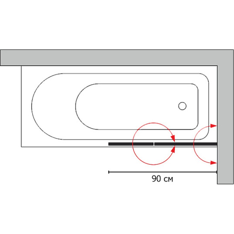 Шторка на ванну GuteWetter Trend Pearl GV-862B правая 90 см стекло бесцветное, фурнитура хром