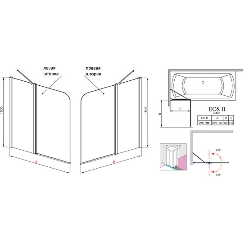 Шторка на ванну Radaway EOS II PND 110 L