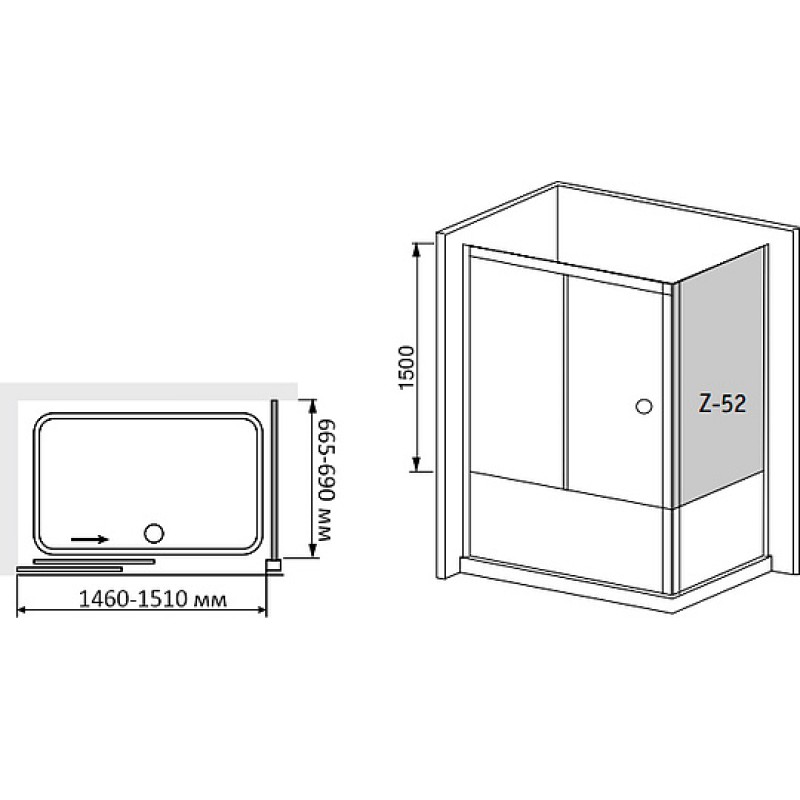 Шторка на ванну RGW Screens SC-82 (1460-1510)х700х1500 профиль хром, стекло шиншилла