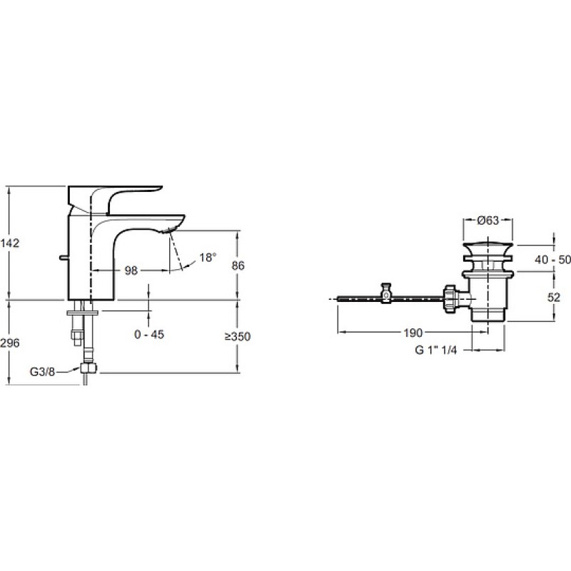 Смеситель Jacob Delafon Aleo E72275-4-CP для раковины