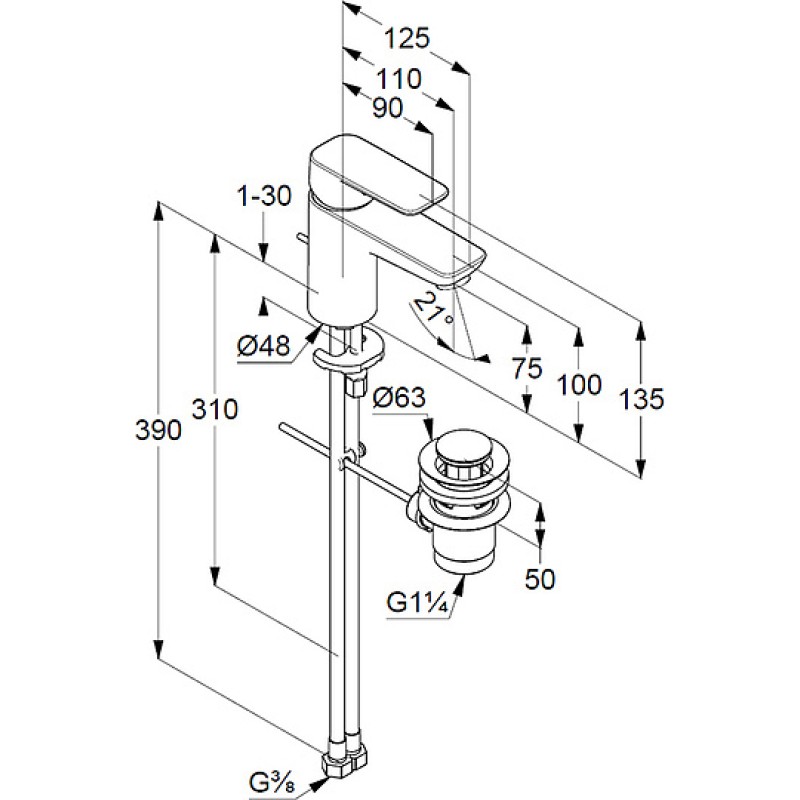 - Донный клапан:в комплекте