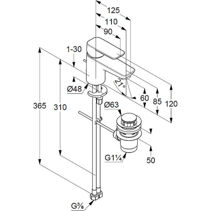 - Донный клапан:в комплекте