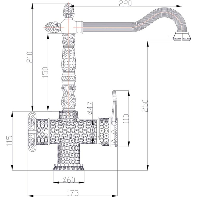 Смеситель Zorg Antic A 50 KF-BR для кухонной мойки