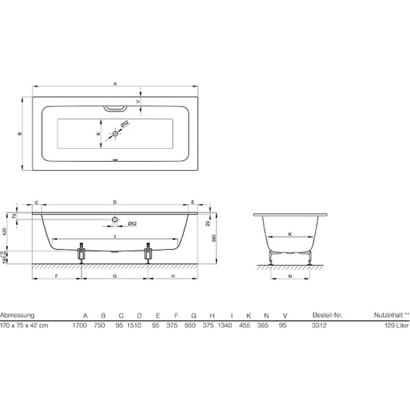 Стальная ванна Bette One 3312