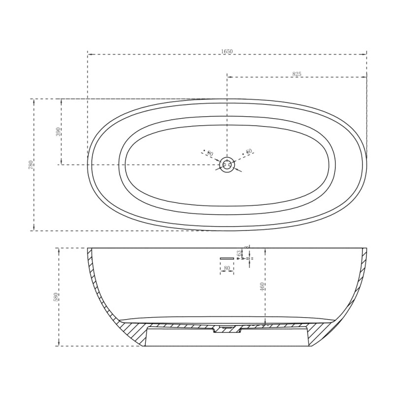 Ванна из искусственного камня ABBER Stein AS9620-1.6 165x78