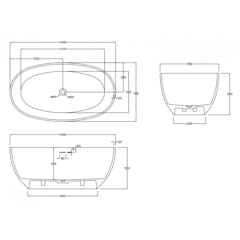 Ванна из искусственного камня ABBER Stein AS9641-1.4 140x78