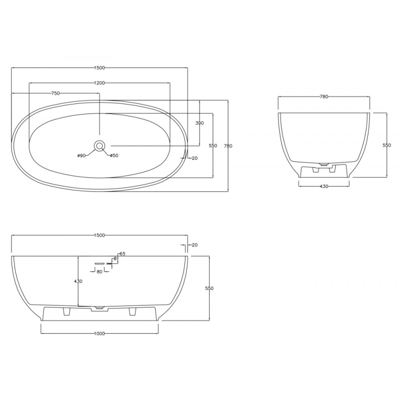 Ванна из искусственного камня ABBER Stein AS9641-1.5 150x78