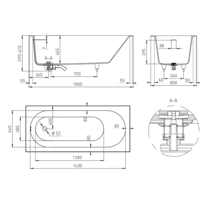 - Расположение слива:стандартное